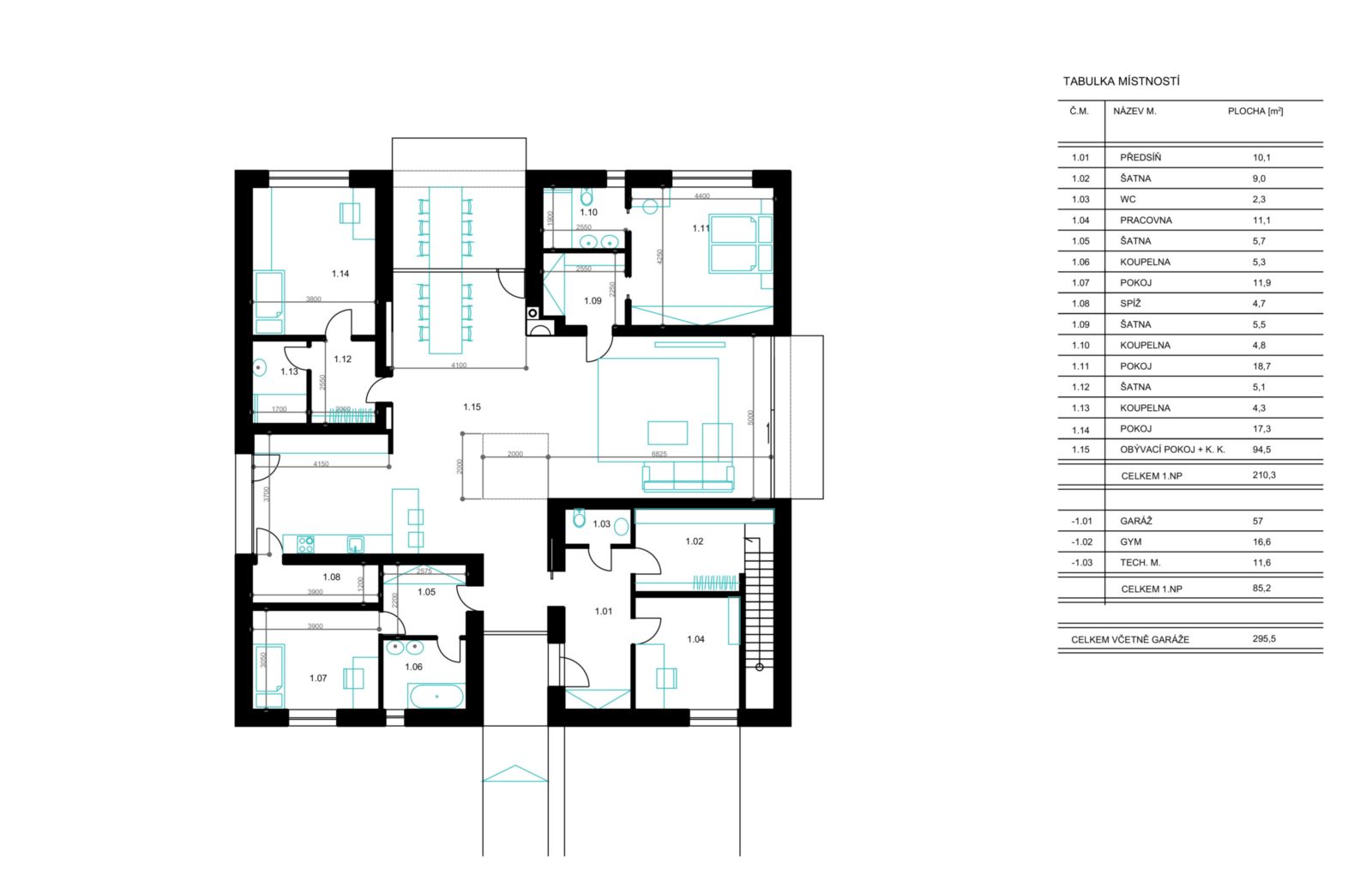 | 1.PP včetně garáže: | 85.2 m2 |